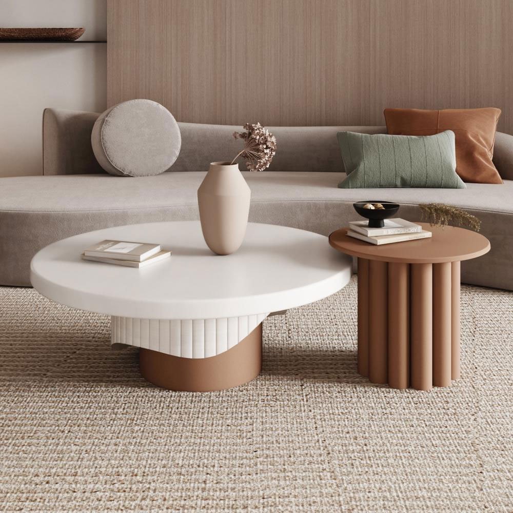 Elevate your living space with our Contemporary 2-Piece Round Wood Coffee Table Set. With sleek lines and minimalist styling, this set features two round coffee tables in contrasting white and walnut finishes. The unique fluted base adds a touch of modern elegance to any room. Crafted from durable MDF, these coffee tables are built to last while providing both functionality and style. Perfect for adding a contemporary flair to your home decor.