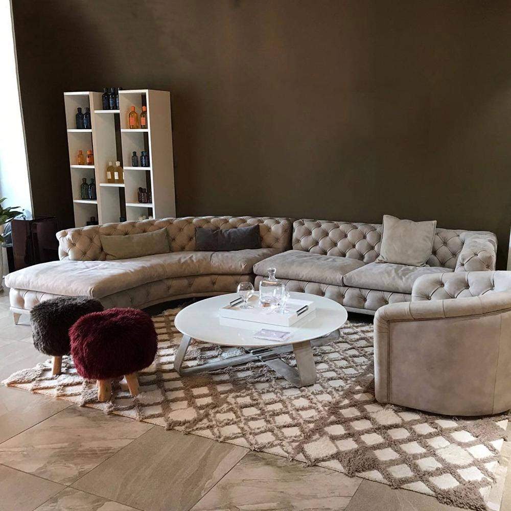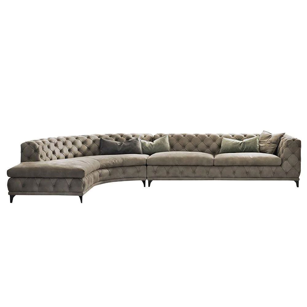 Indulge in luxurious comfort and sophisticated style with our Curved Khaki Sectional Sofa. This elegant sectional sofa features exquisite diamond tufting details, adding texture and depth to your living space. Upholstered in sumptuous velvet and generously padded with high-density foam, this sofa provides unparalleled comfort for lounging and relaxation.