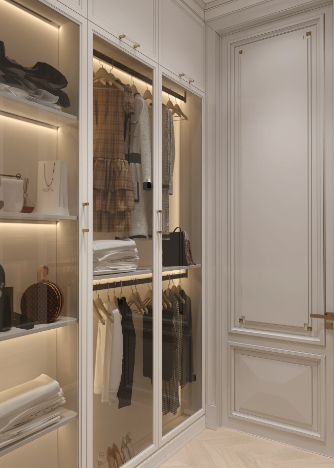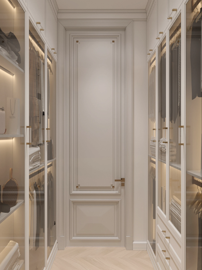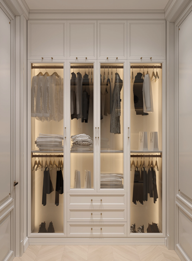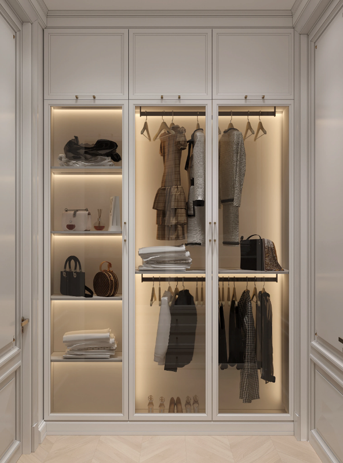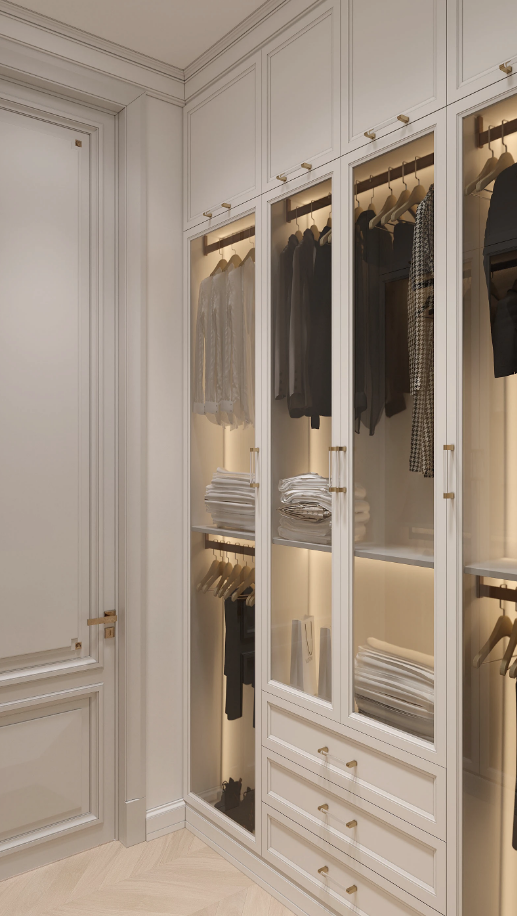 This custom wardrobe is ideal for individuals and families seeking smart storage that looks just as good as it functions. It brings together the sophistication of a designer closet with the personalization that modern homes need.