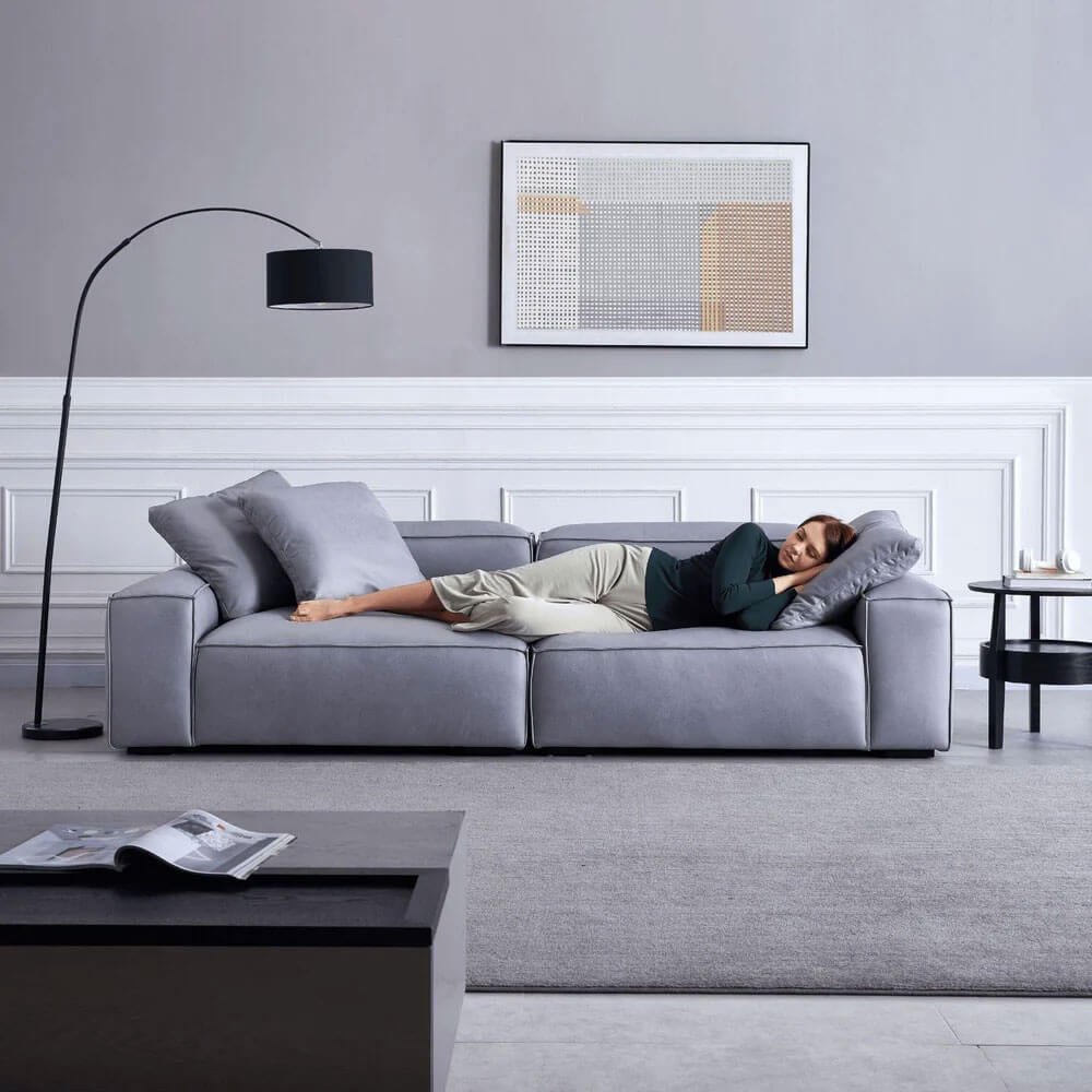 Upholstered in high-quality fabric, the Loft Sofa offers a luxurious and soft touch, ensuring maximum comfort for you and your guests. The sleek, low-profile design with clean lines and plush cushions provides a sophisticated look that enhances any interior decor. The sturdy frame and robust construction ensure durability and stability, making this sofa a long-lasting investment for your home.