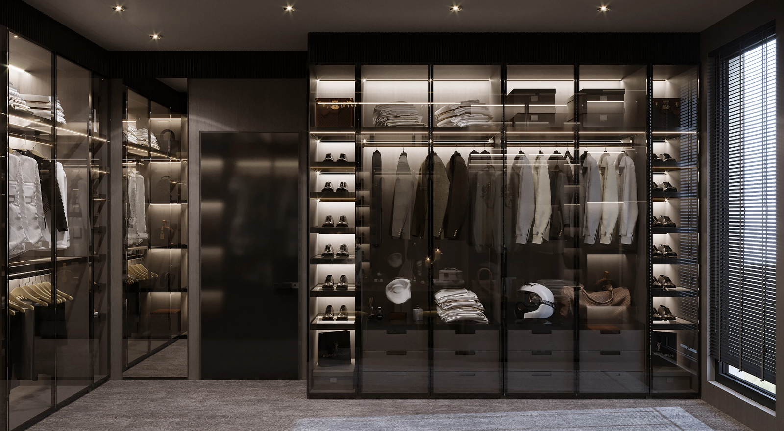The transparent glass design adds a luxurious showroom-style effect, while internal lighting enhances visibility and aesthetic appeal—ideal for organizing clothing, accessories, and personal items with ease. Whether you’re in Dubai, Sharjah, Ajman, Abu Dhabi, or Ras Al Khaimah, this wardrobe is a standout piece for any contemporary home.
