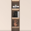 • Vertical display niche with LED strips—highlight art pieces or skincare.